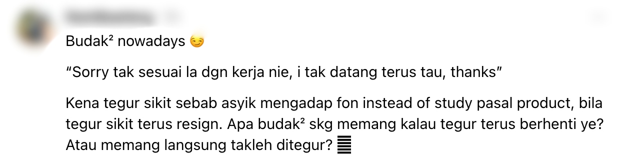 Lelaki berkenaan mendedahkan sikap anak muda yang dikatakan tidak datang kerja dan malah tidak menjawab panggilan telefon.