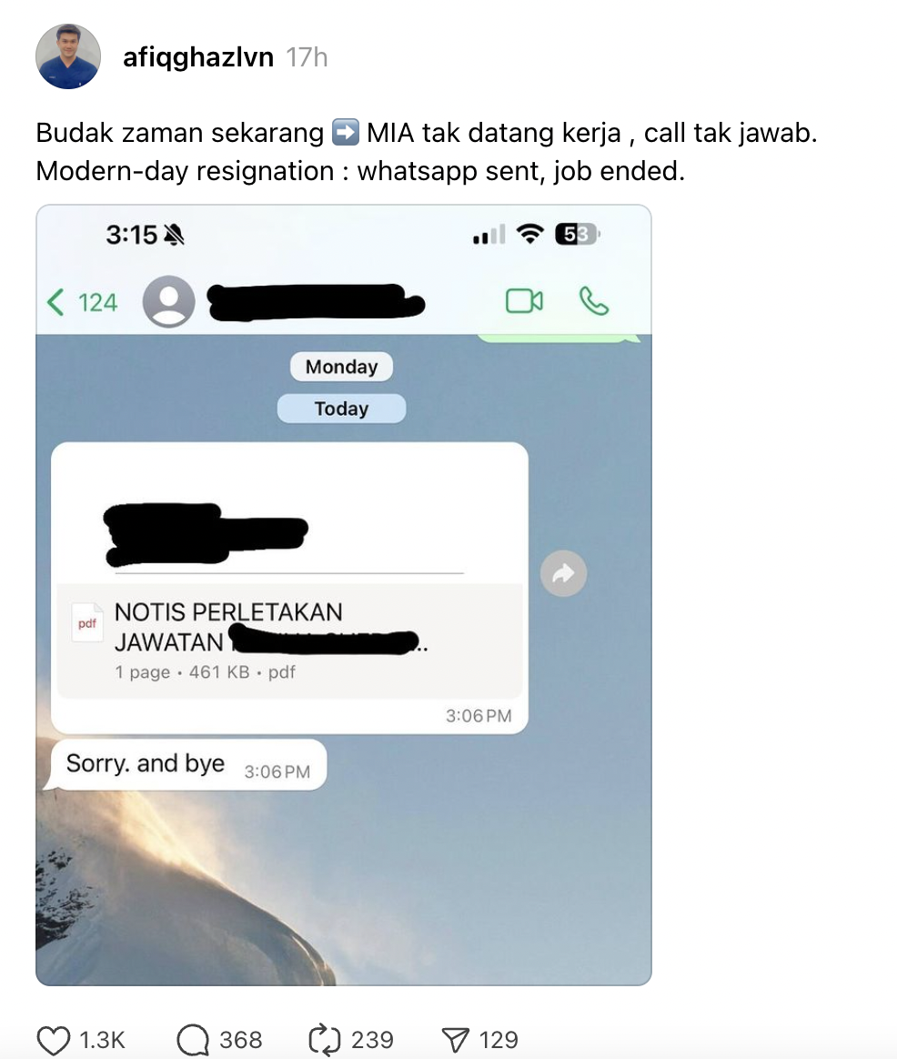“Sorry And Bye” – Ramai Geram Tengok Cara Gen Z Mesej Nak Berhenti Kerja Sesuka Hati