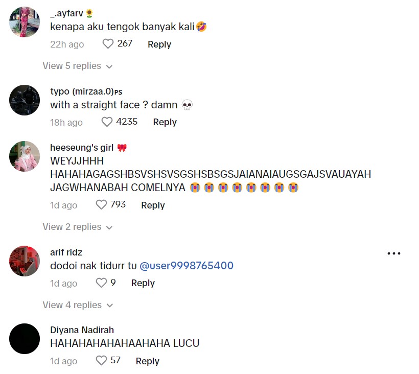 Menerusi tinjauan di bahagian komen, pelbagai reaksi diberikan netizen yang rata-ratanya terhibur dengan video berkenaan.