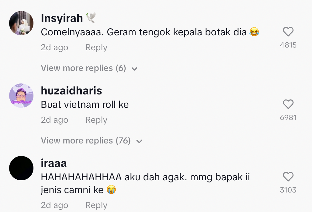 Dalam pada itu, tinjauan di ruangan komen mendapati rata-rata netizen turut terhibur dan memberikan pelbagai reaksi mereka.