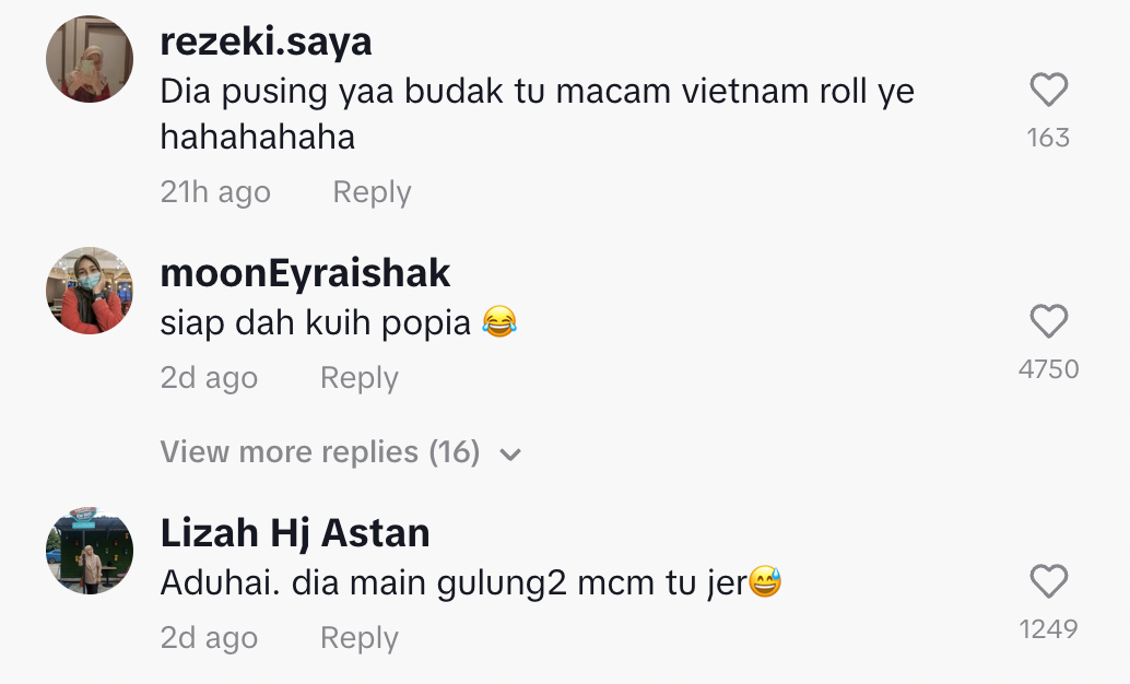 Berikut di bawah adalah antara komen daripada netizen di TikTok: