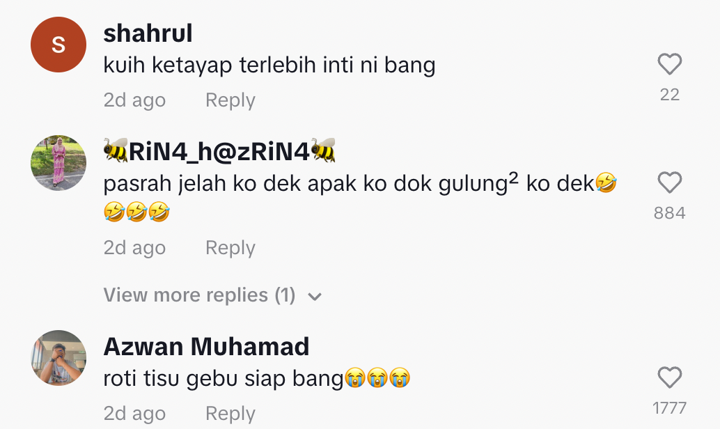 "Kuih ketayap terlebih inti ni bang" – Netizen