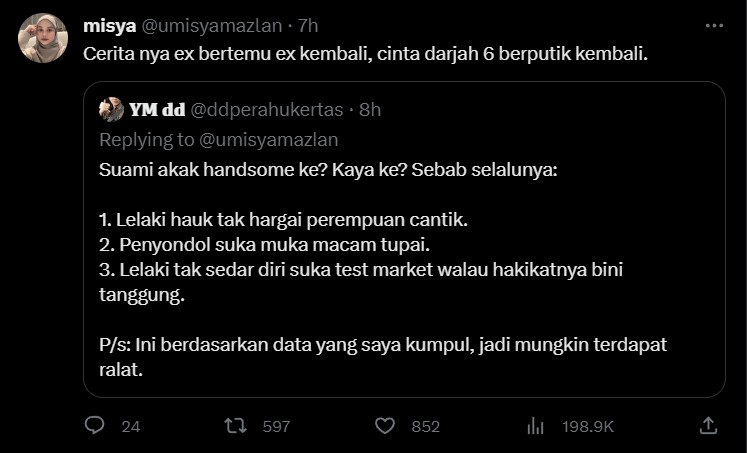 Susulan tularnya pendedahan tersebut di Twitter, ianya telah meraih sehingga 2K quotes, 9.3K likes, 6.3K reposts dan 1.8M views.