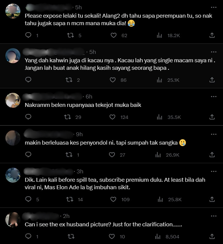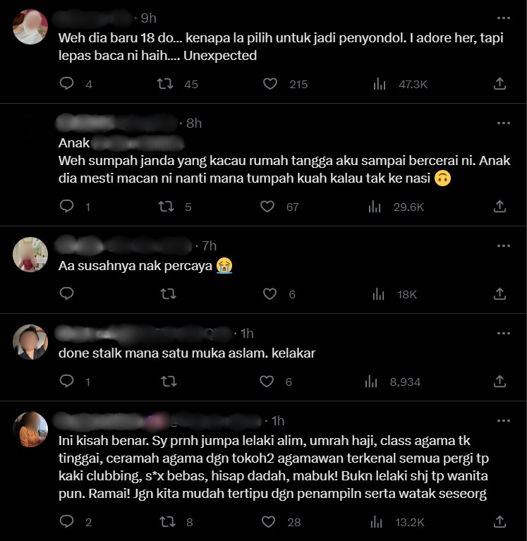 "Weh dia baru 18 do, kenapa la pilih untuk jadi penyondol. I adore her, tapi lepas baca ni haih, unexpected" – Netizen