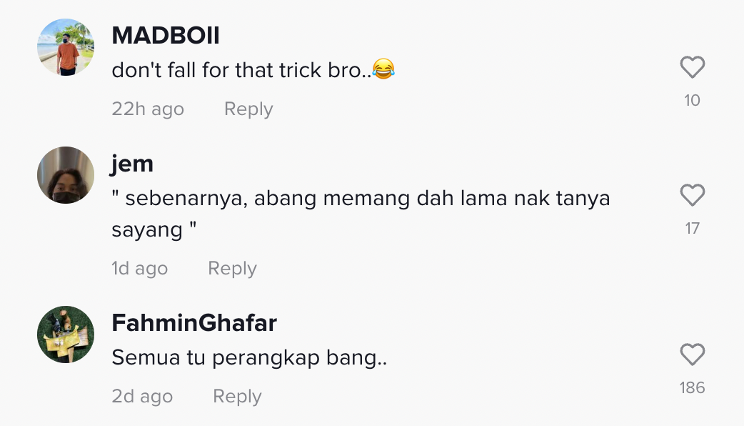 Berikut di bawah adalah antara komen daripada netizen di TikTok: