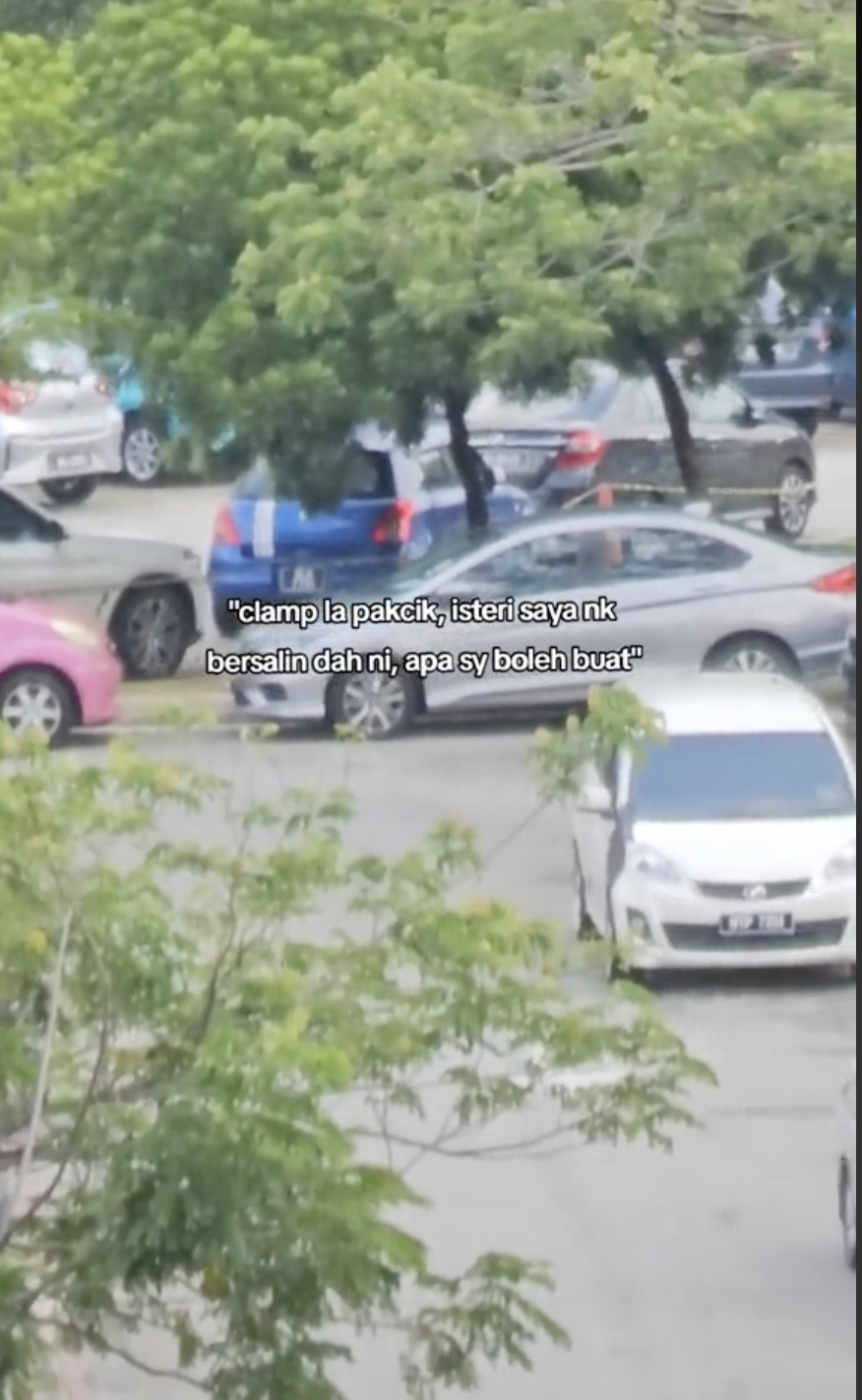 Namun, dia tidak pedulikan amaran pengawal itu dan terpaksa parking di situ juga selepas melihat keadaan isterinya. Tambahnya, dia sudah tiga kali mencari parking tetapi semuanya penuh. Justeru, dia akur jika betul keretanya akan dikunci.