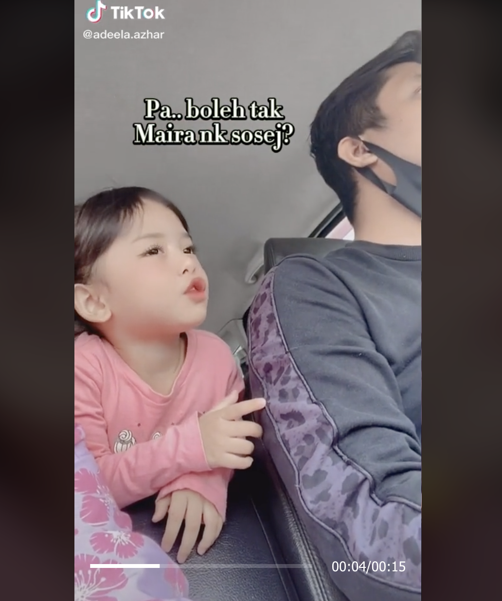 Menerusi video yang dimuat naik oleh @adeela.azhar, kelihatan seorang budak perempuan berada di sebelah ayahnya yang sedang memandu. Dia cuba meminta sesuatu namun tidak dilayan oleh si ayah.