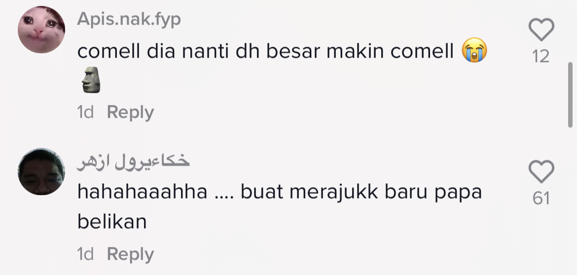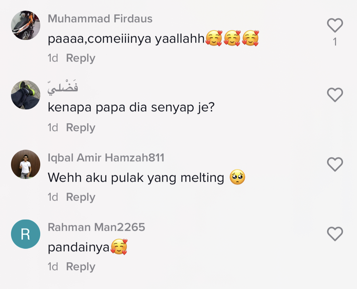 Tinjauan di ruangan komen mendapati rata-rata netizen turut terhibur dengan gelagat budak perempuan itu memujuk ayahnya.