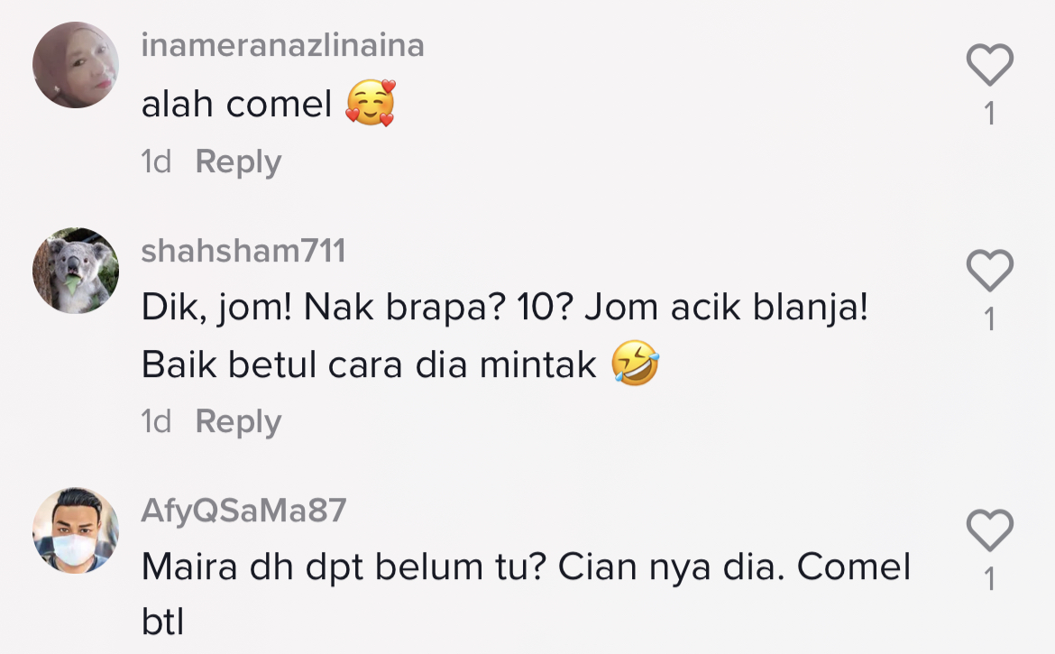 Berikut di bawah adalah antara komen menarik daripada netizen di TikTok: