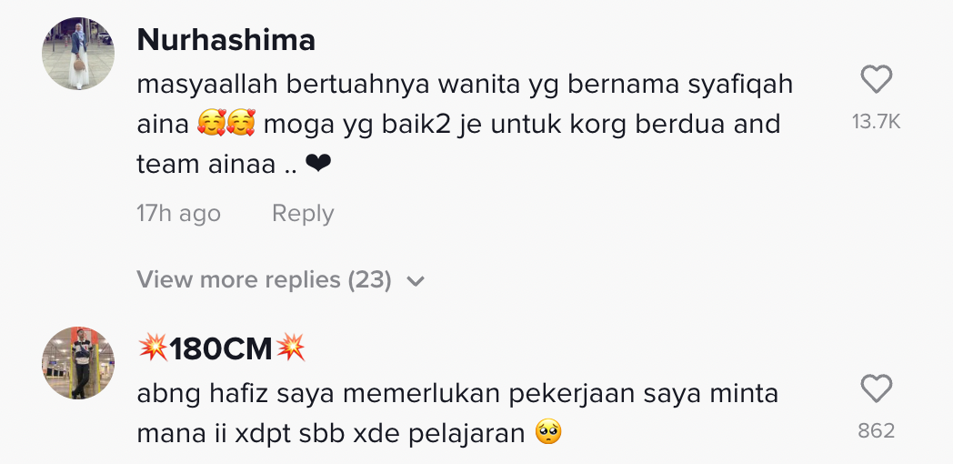 Berikut di bawah adalah antara komen daripada netizen di TikTok: