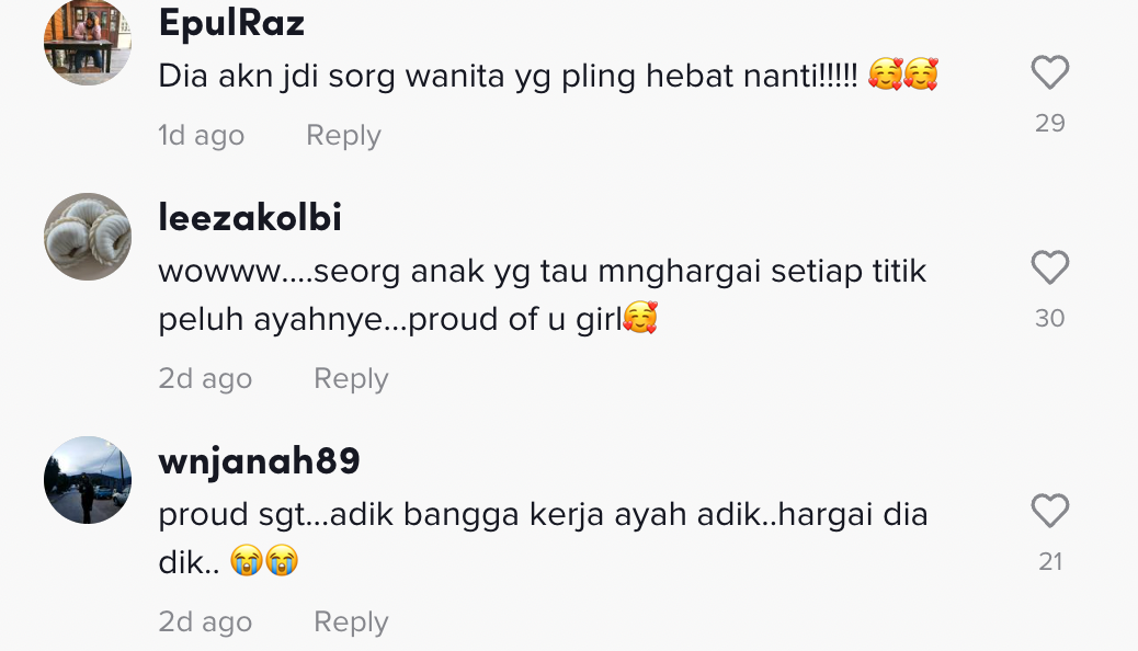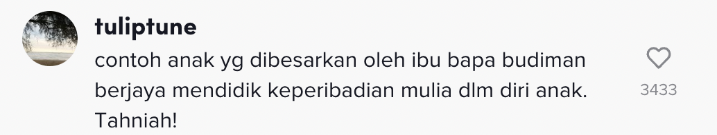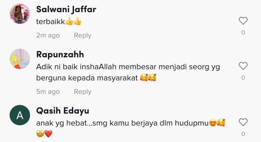 Dalam pada itu, tinjauan di ruangan komen mendapati rata-rata netizen turut memberikan kata-kata positif buat kanak-kanak tersebut.