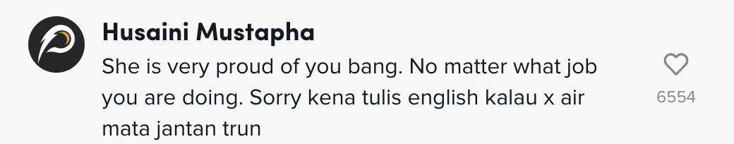 "She is very proud of you bang. No matter what job you are doing" – Netizen