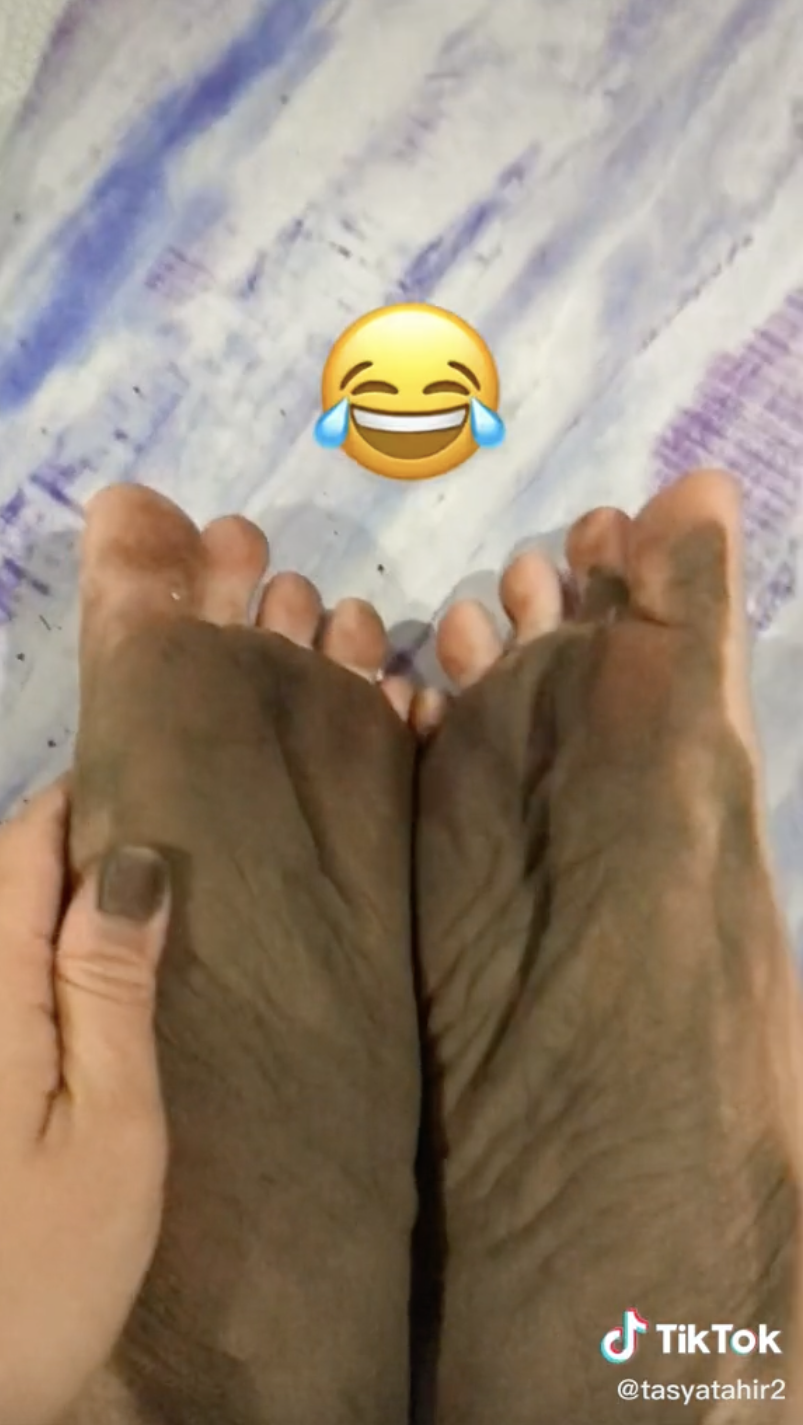 Kemudian, pemilik video sempat menunjukkan jari tangan dan kakinya yang sudah siap diinai. Namun, apa yang mengejutkan netizen adalah apabila dia menunjukkan kedua-dua tapak kakinya yang penuh dengan inai juga.