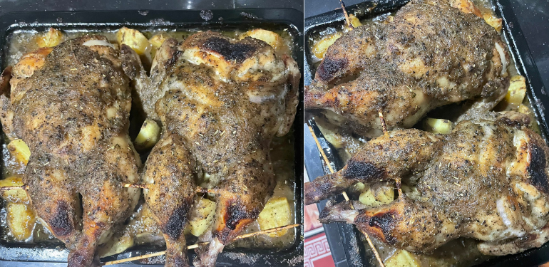 3. Setelah siap perap, masukkan ayam ke dalam oven dengan suhu sekitar 180-200 Celsius. Bakar dalam masa 1 jam atau 1 jam setengah pertama. Siram ayam dengan kuah perapan dan tuang sedikit minyak supaya ayam tidak kering.