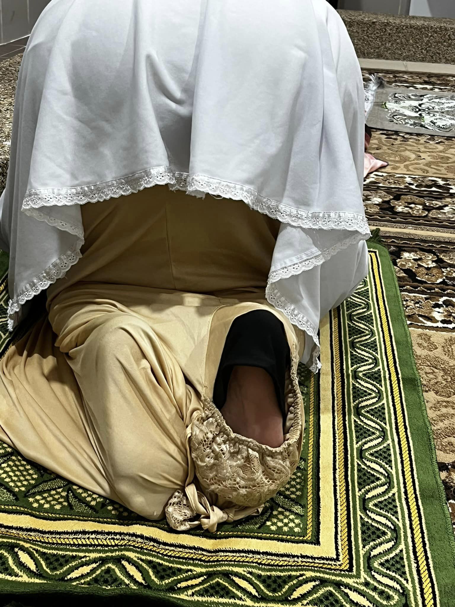 Difahamkan, ketika itu kain telekung tidak mencukupi dan hanya tinggal bahagian muka telekung sahaja untuk dipakai.