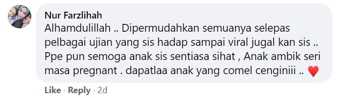 Dalam pada itu, netizen juga turut berkongsi pengalaman mereka dan ada yang mendoakan kesihatan dirinya dan bayi