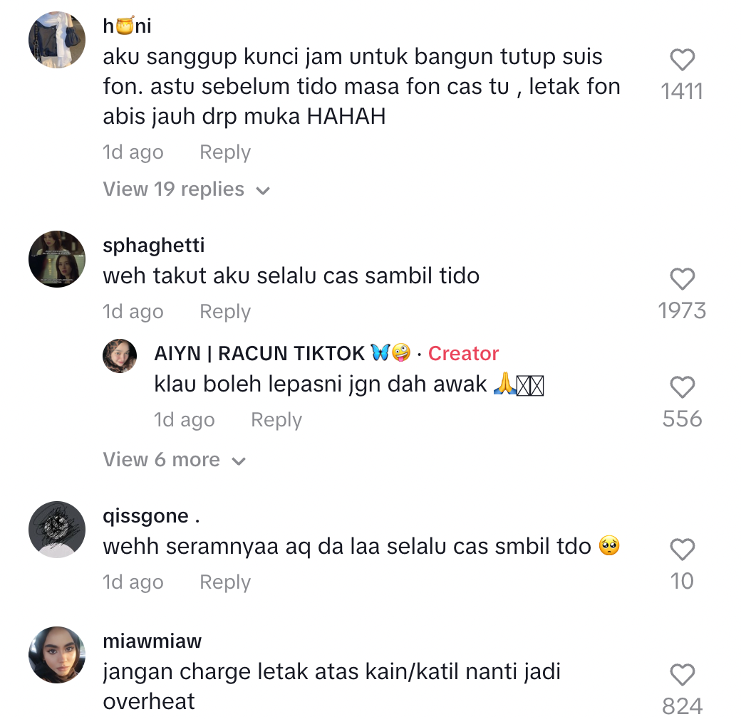 "Weh takut aku selalu cas sambil tidur" – Netizen