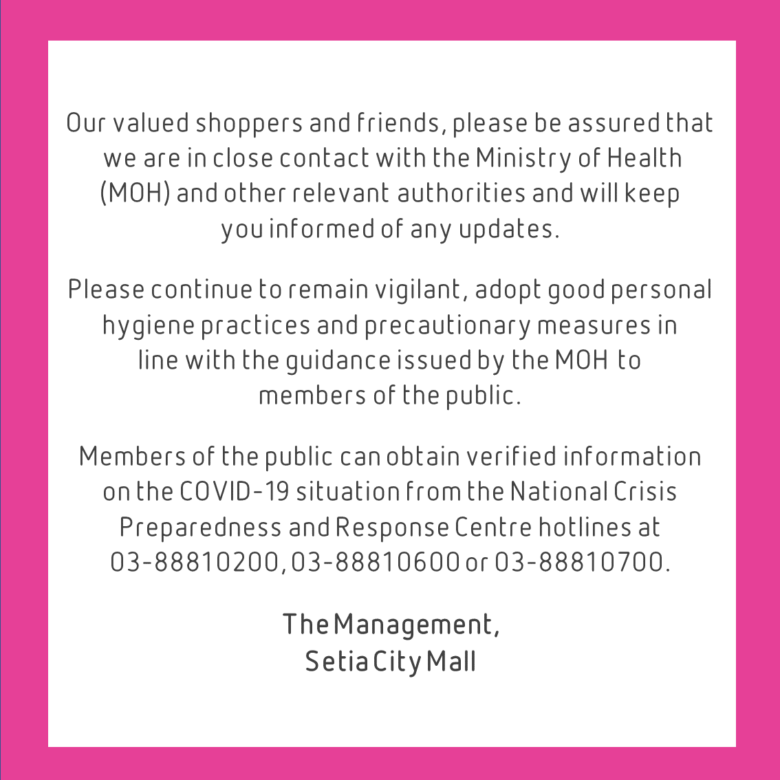 Berikut di bawah adalah kenyataan rasmi penuh yang dikeluarkan oleh pihak Setia City Mall: