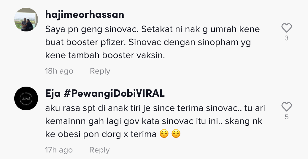 Namun, lain pula dengan video yang tular di TikTok ini apabila seorang lelaki mendakwa dia tidak boleh masuk ke Arab Saudi disebabkan jenis vaksin yang diambil telah menarik perhatian ramai.