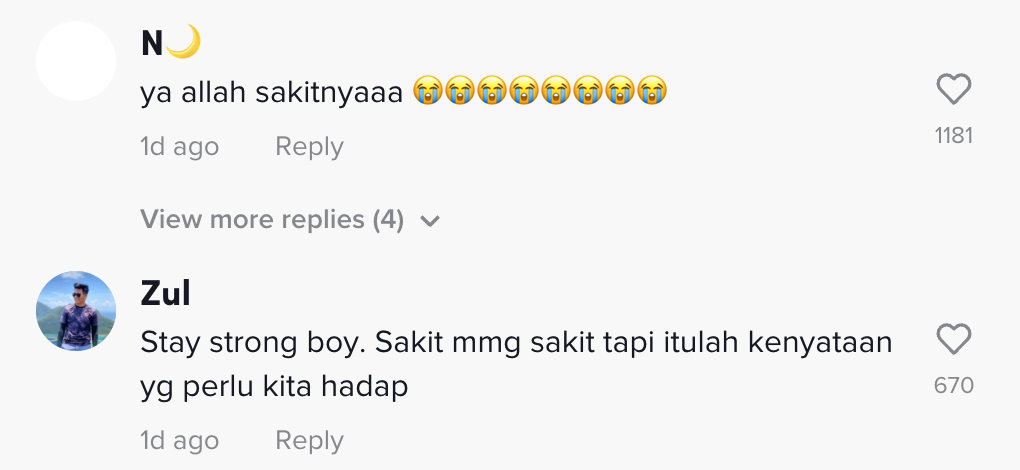 Dalam pada itu, tinjauan di ruangan komen mendapati rata-rata netizen turut memberikan pelbagai kata-kata semangat buat pemuda itu.