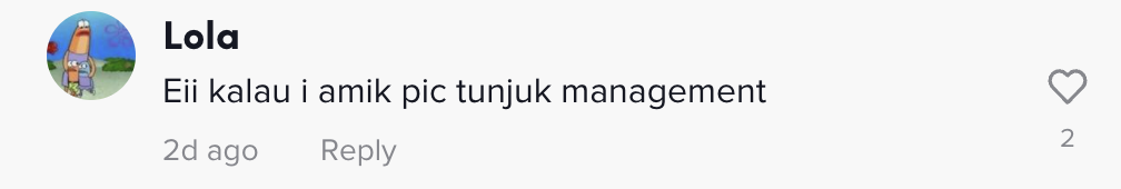 "Eii kalau I amik pic tunjuk management" – Netizen