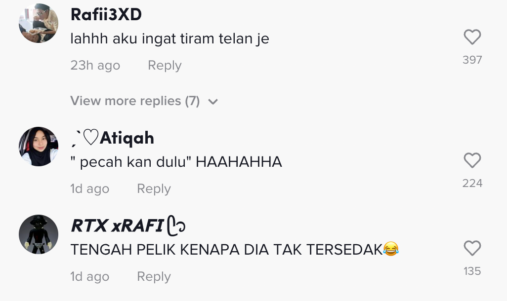Dalam pada itu, tinjauan di ruangan komen mendapati rata-rata netizen turut terhibur melihat gelagat lelaki itu.