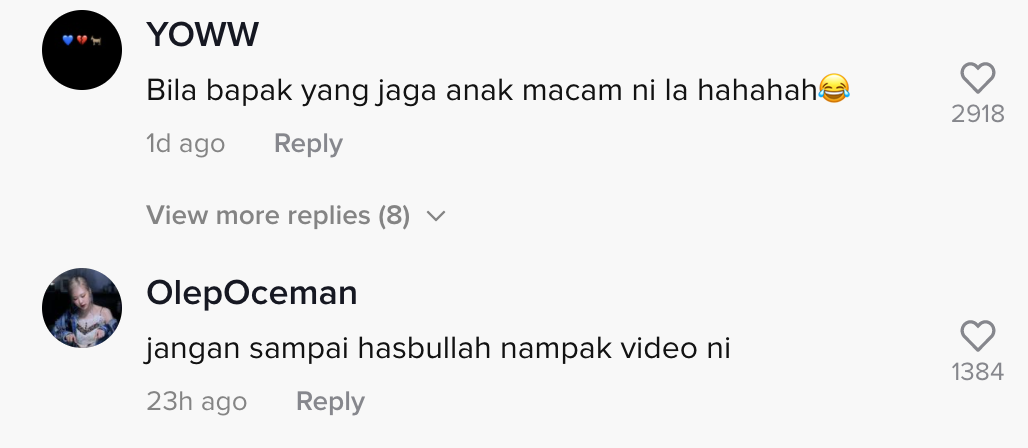 "Bila bapa yang jaga anak macam ni lah hahaha" – Netizen