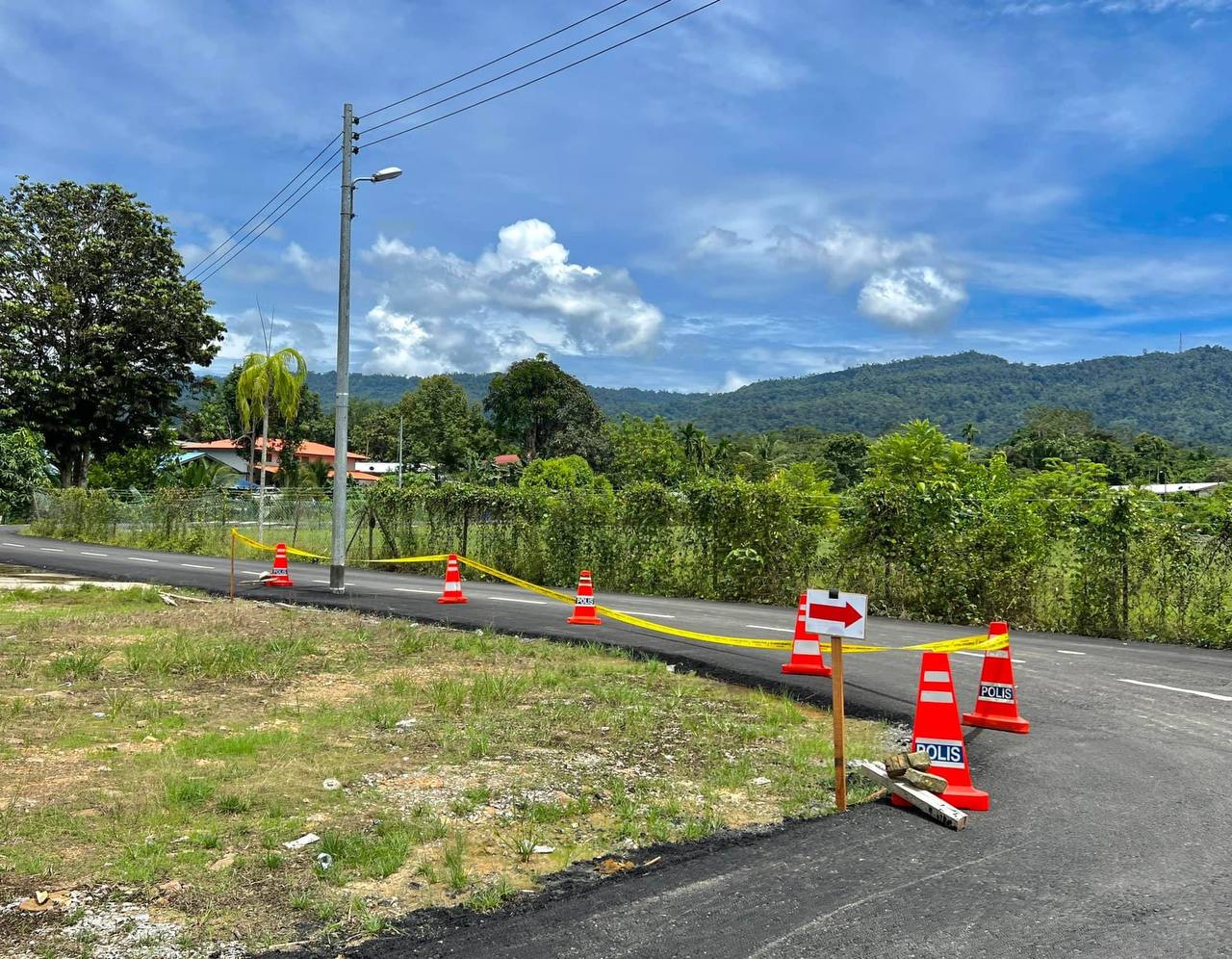 Setelah tularnya kejadian yang berlaku di Belaga, Sarawak itu, pihak polis IPD Belaga bertindak pantas menutup separuh jalan bagi tujuan keselamatan penduduk kampung.