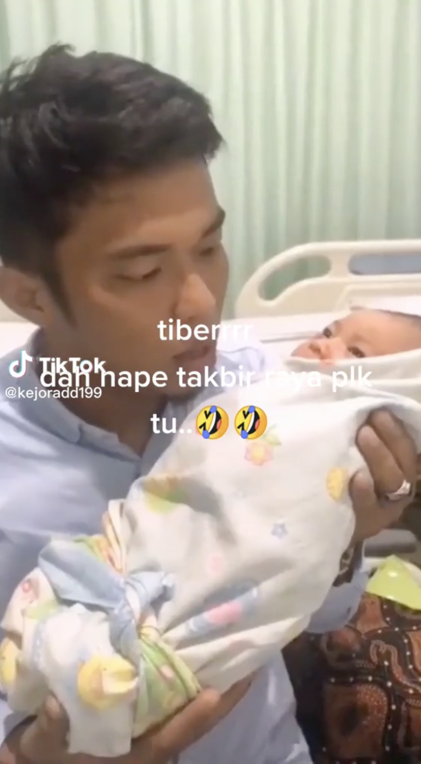 Namun, tular satu video di TikTok ini memaparkan seorang bapa tersalah melaungkan takbir raya semasa anaknya baru lahir telah mencuri tumpuan ramai.