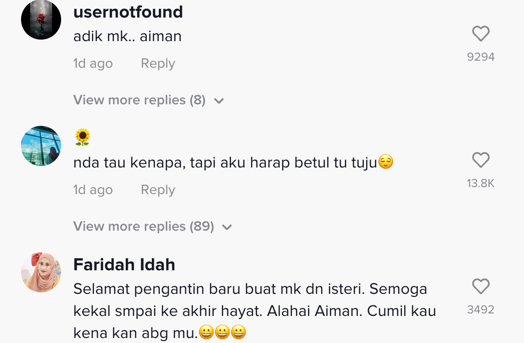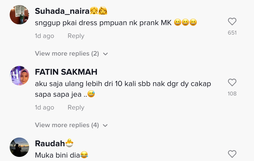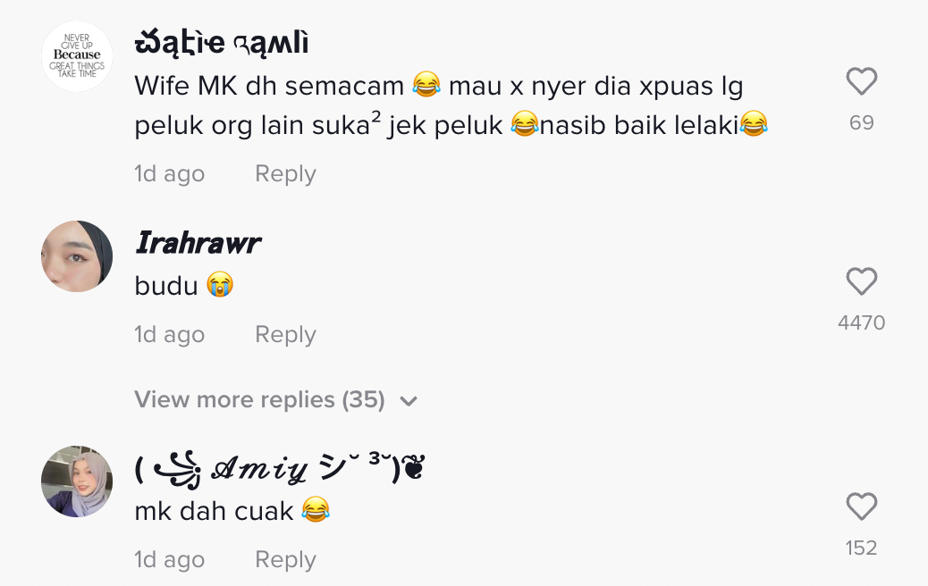 Berikut di bawah adalah antara komen daripada netizen di TikTok: