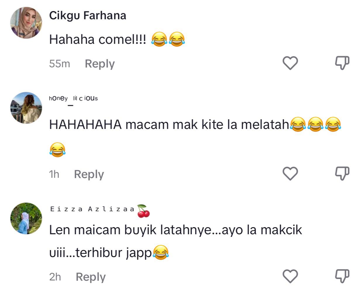 Dalam pada itu, tinjauan di ruangan komen mendapati rata-rata netizen turut terhibur melihat gelagat tiga mak cik itu melatah dan memberi komen mencuit hati mengenainya.
