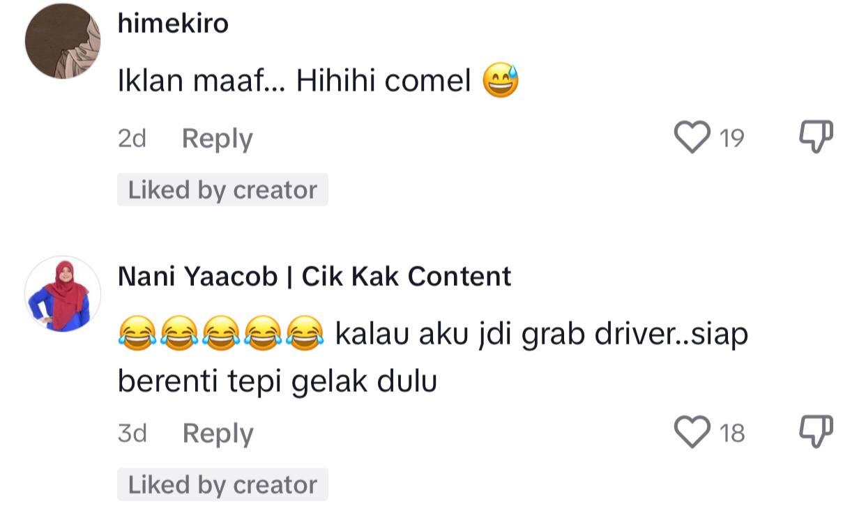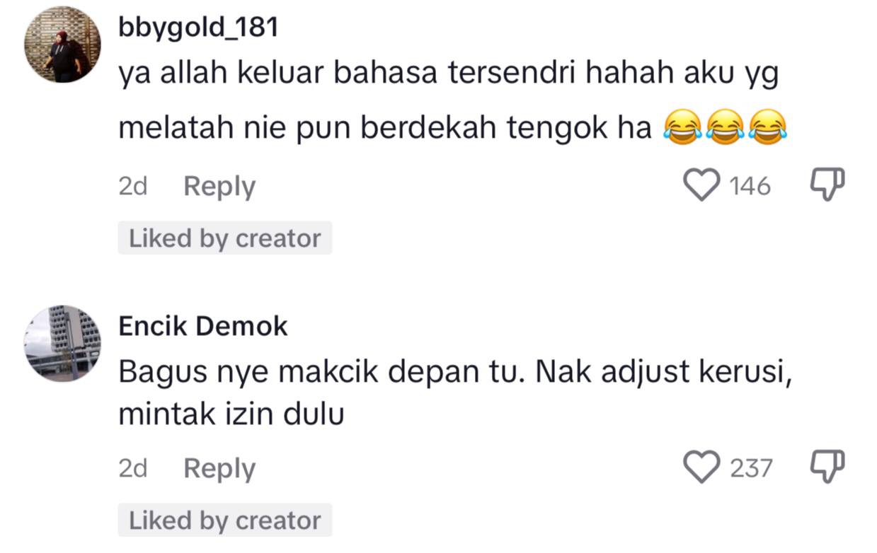 Berikut di bawah merupakan antara komen menarik daripada netizen di TikTok: