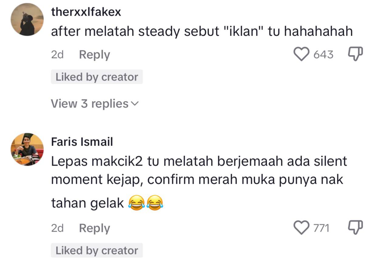 "Lepas mak cik-mak cik tu melatah berjemaah ada silent moment kejap, confirm merah muka punya nak tahan gelak haha" – Netizen
