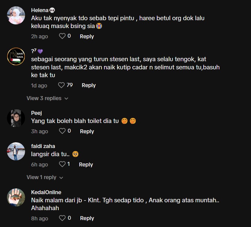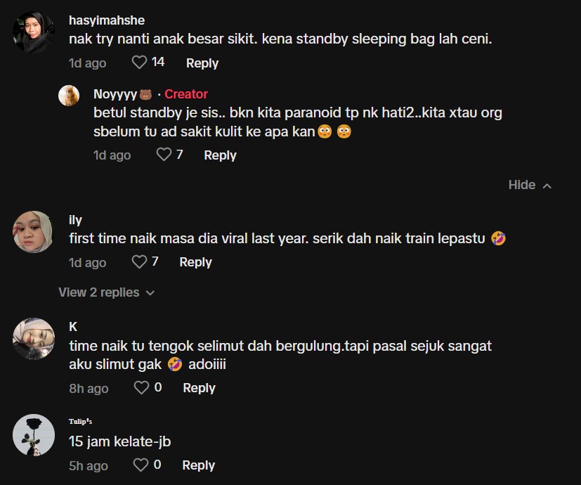 "Haha saya suka naik sleeper train, tapi nak naik tu saya bawa toto, selimut, sarung bantal sendiri" – Netizen