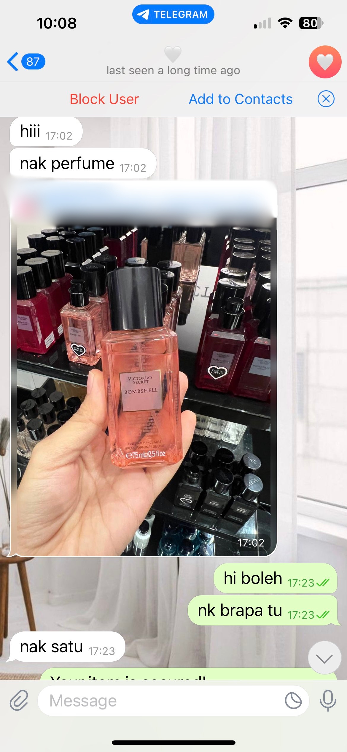 Difahamkan, pada awalnya pelanggan itu meminta dia untuk membelikannya satu botol minyak wangi.