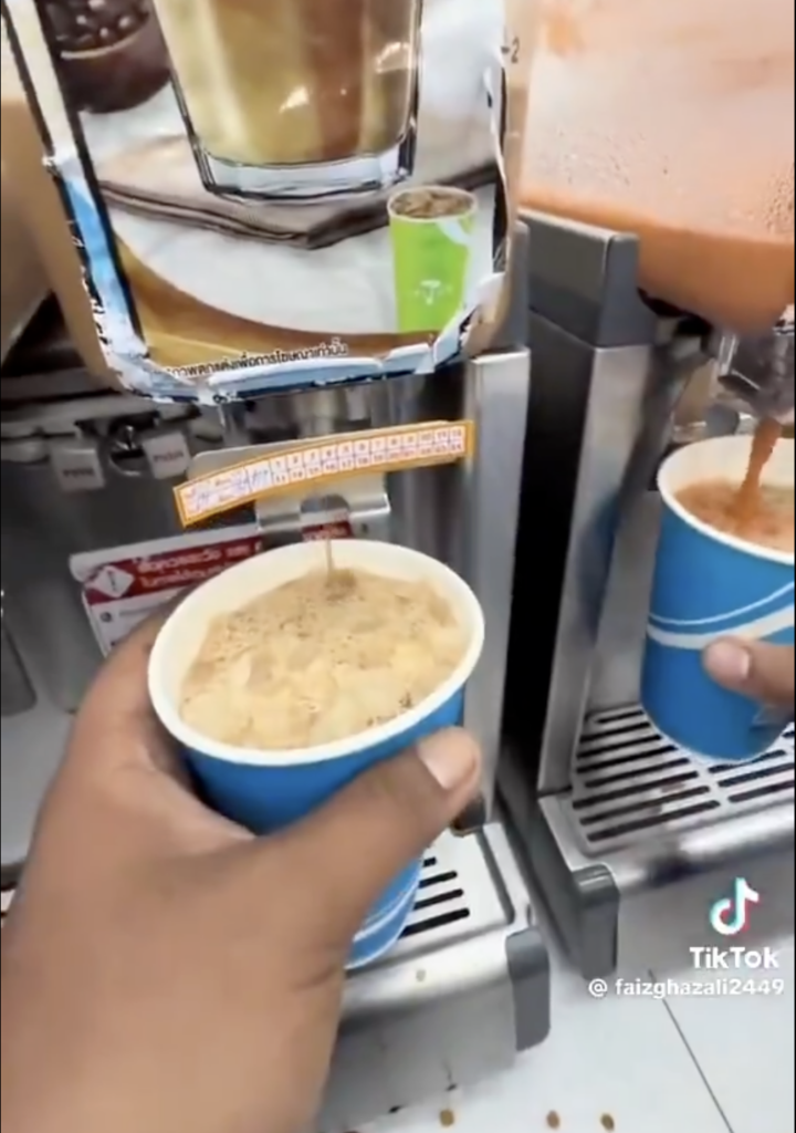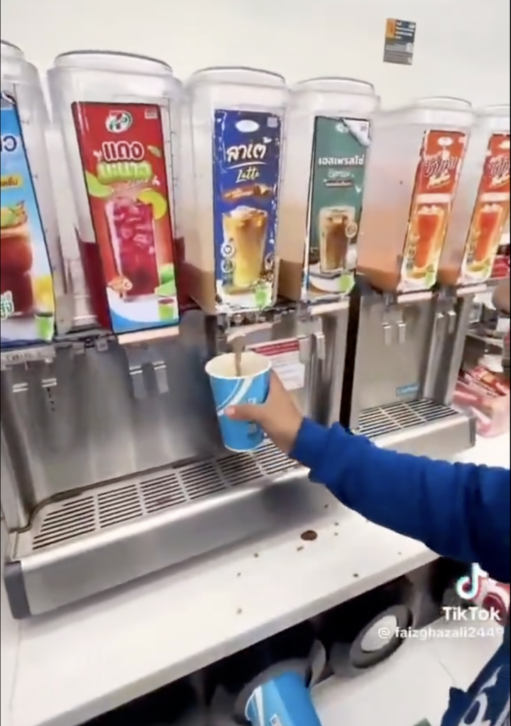 Menerusi video yang tular di laman X, mereka dilihat menyalahgunakan mesin minuman layan diri yang dipercayai berada di sebuah kedai serbaneka, dengan mengisi minuman secara berlebihan sehingga melimpah.