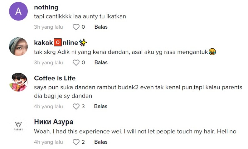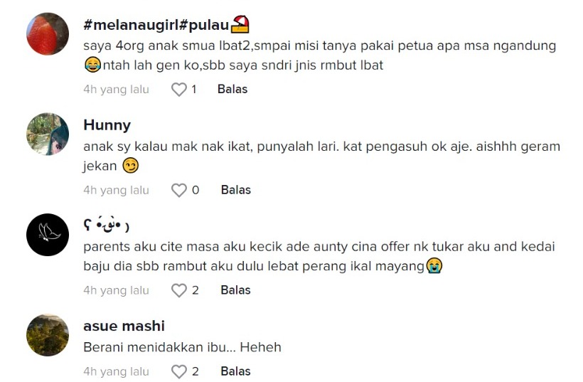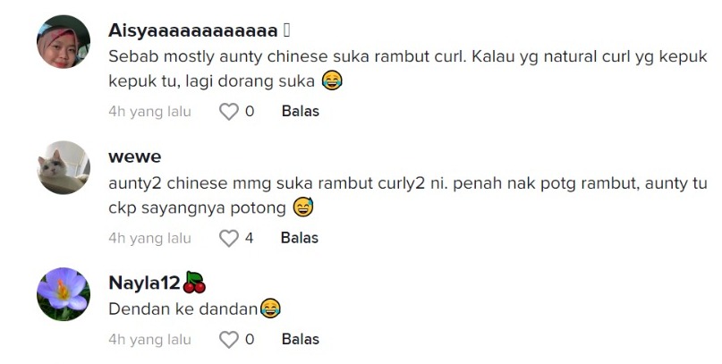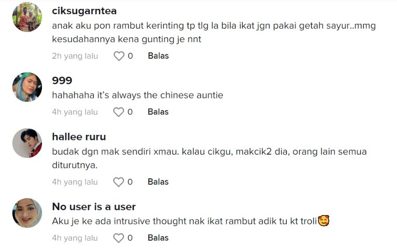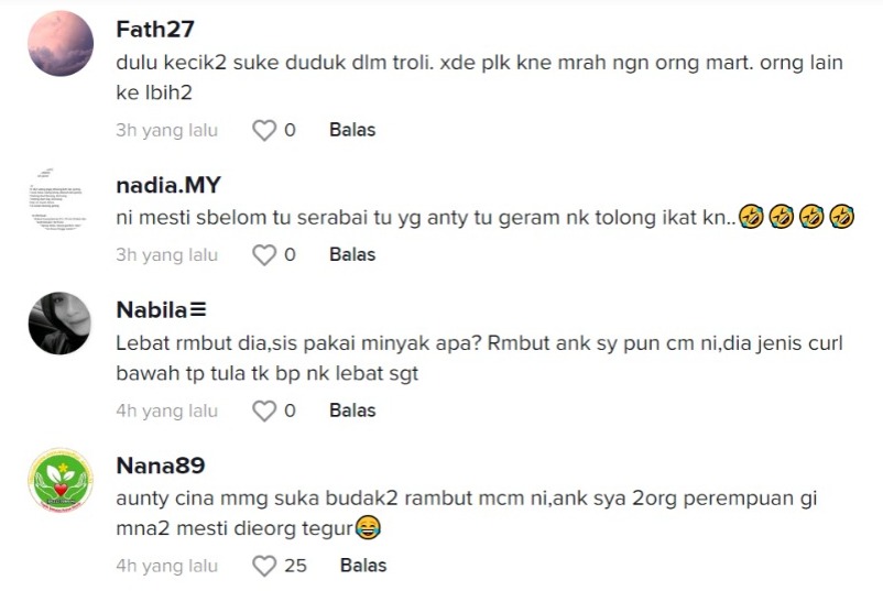 "Aunty Cina memang suka budak-budak rambut macam ni, anak saya 2 orang perempuan pergi mana-mana mesti mereka tegur haha" – Netizen