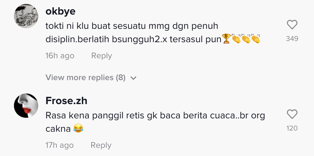 "TokTi ni kalau buat sesuatu memang dengan penuh disiplin. Berlatih bersungguh-sungguh tak tersasul pun" – Netizen