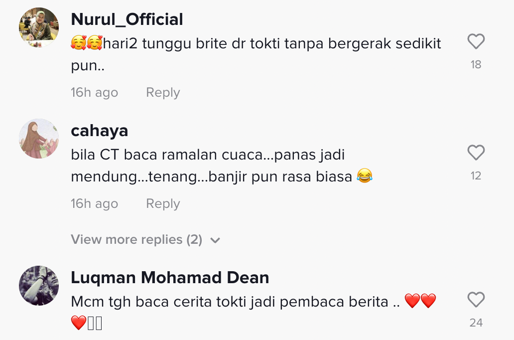 Cover image via @radiotelevisyenmalaysia (TikTok)Kebiasaannya di dalam sebuah berita, pasti ada seseorang yang akan menyampaikan info cuaca terkini