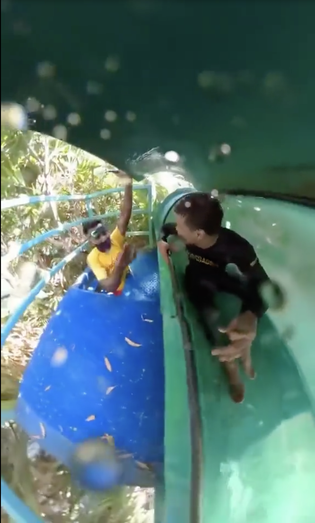 Tular sebuah video di media sosial baru-baru ini apabila seorang lelaki tersangkut di dalam sebuah gelongsor air semasa sedang bermain telah mendapat perhatian ramai.