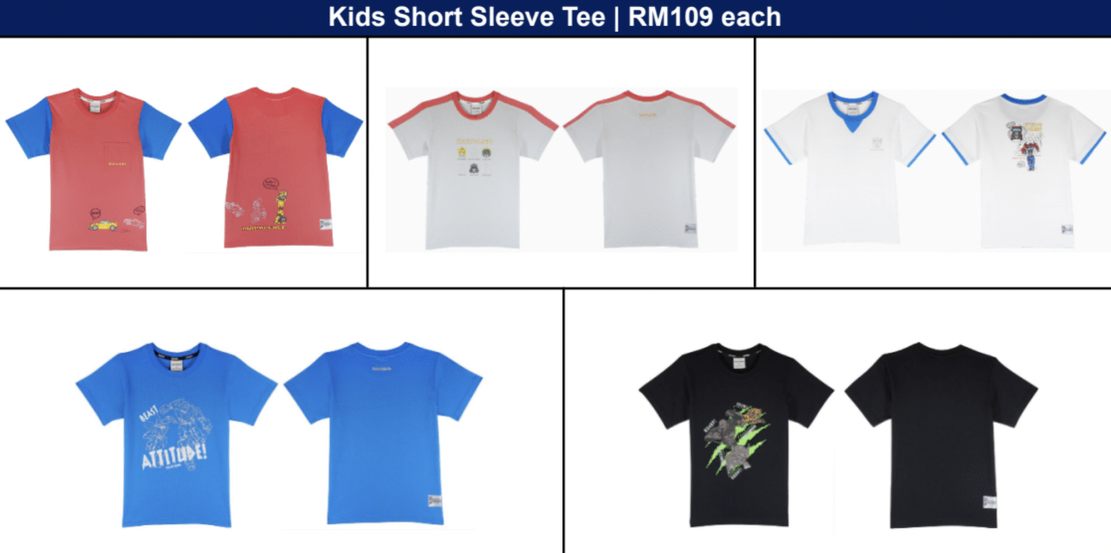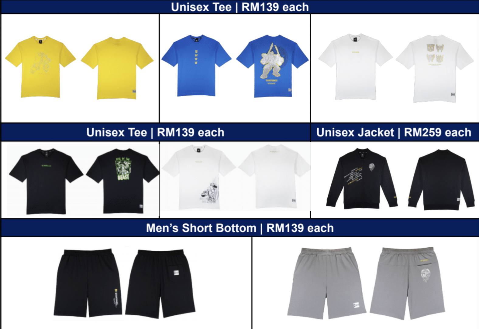 Hadir dengan reka bentuk yang bergaya, koleksi ini menampilkan rangkaian pakaian daripada dewasa sehingga pada kanak-kanak, termasuk tee kasual, jaket dan seluar pendek, serta aksesori seperti dan beg, topi besbol dan sebagainya.
