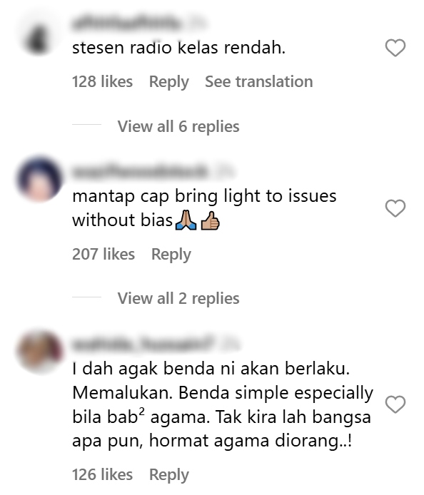 Tinjauan di bahagian komen menunjukkan rata-rata netizen memberi komen kecaman terhadap tindakan stesen radio berkenaan.