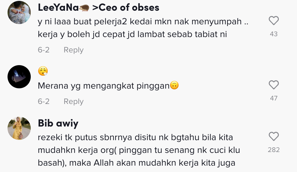 Berikut di bawah adalah antara komen daripada netizen di TikTok: