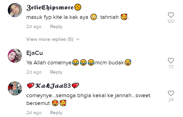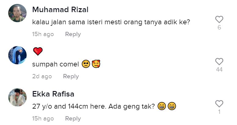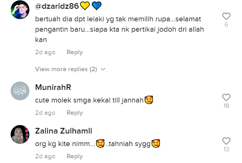 Malah, ada juga yang memuji pengantin itu sangat comel dan kelihatan seperti budak kecil. Ramai juga yang mengucapkan tahniah dan mendoakan kebahagiaan mereka.