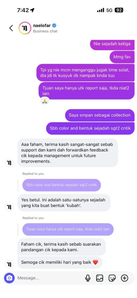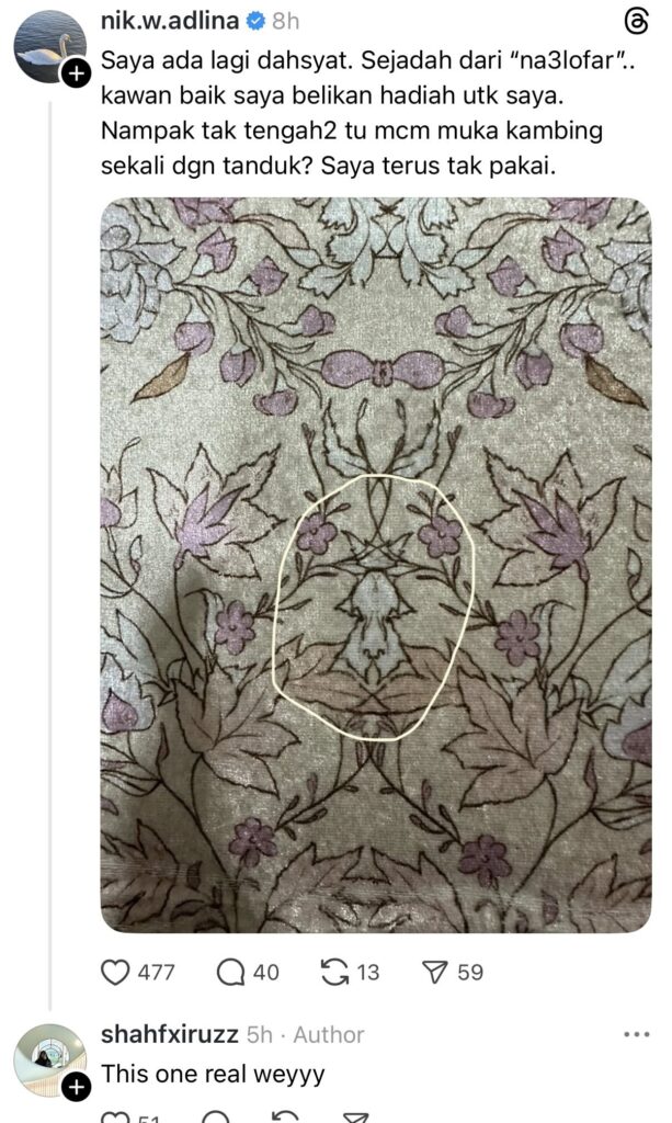 Perkara itu mula menjadi perbualan selepas individu tersebut memuat naik hantaran di platform Threads dan bertanya kepada pelanggan lain sama ada mereka turut menemui corak sama pada sejadah yang dibeli.