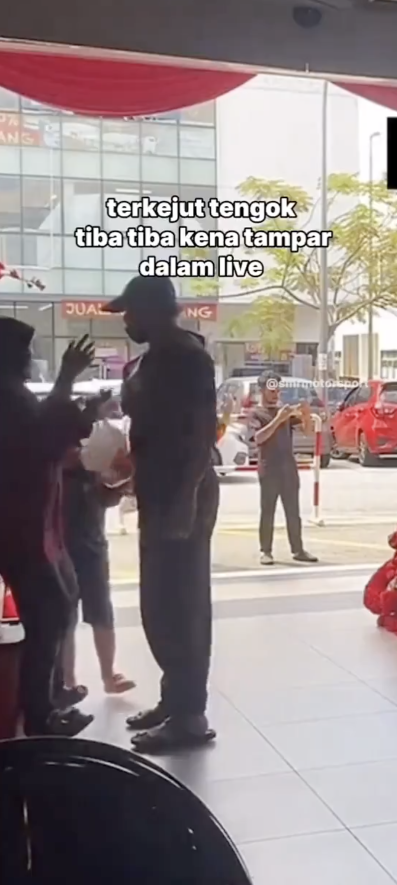 Tindakannya itu tanpa sengaja dirakam oleh pemilik video tersebut ketika pemilik video berkenaan sedang live di media sosial lalu terperanjat dengan apa yang berlaku di depan matanya.