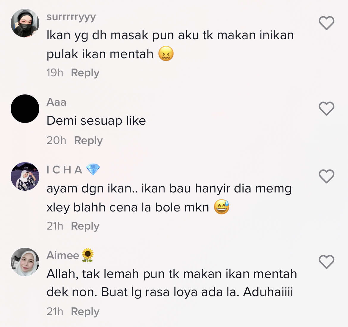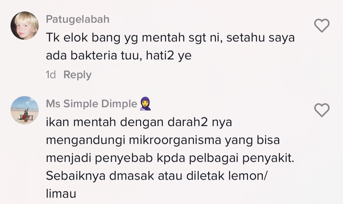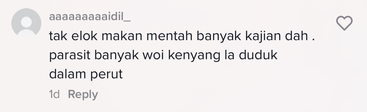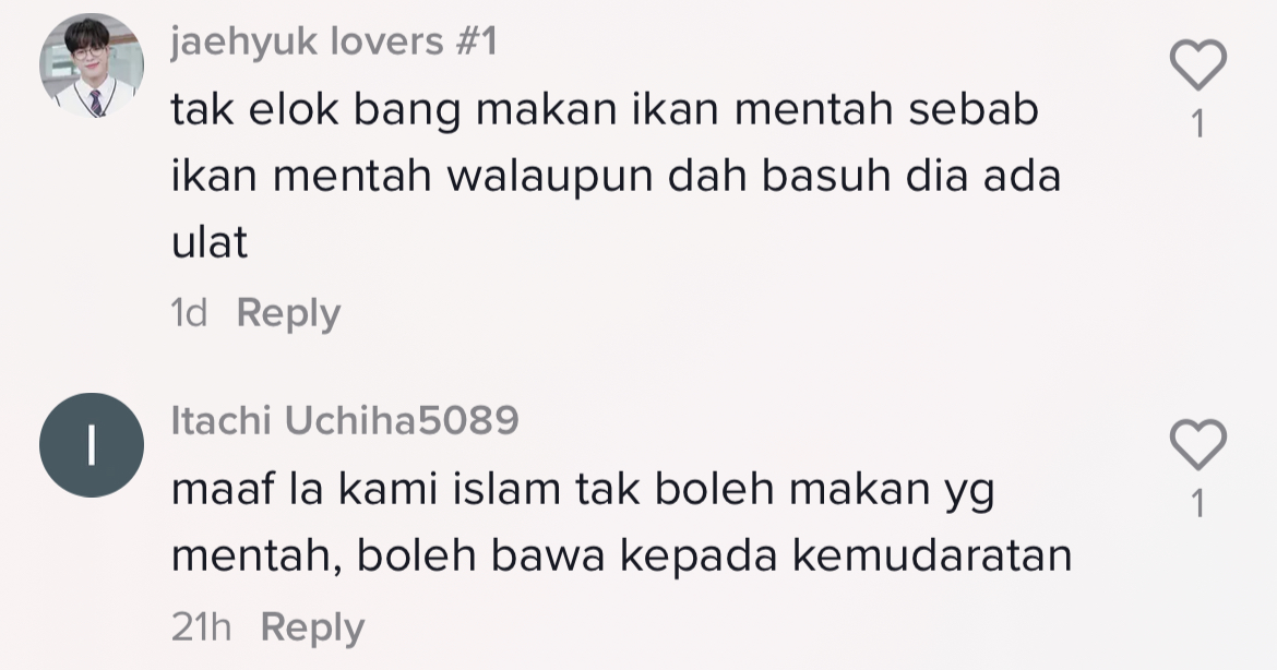 "Tak elok bang makan ikan mentah sebab ikan mentah walaupun dah basuh dia ada ulat" – Netizen
