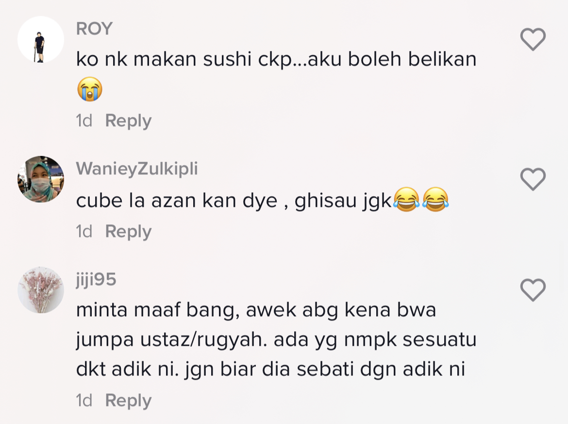 Berikut di bawah adalah antara komen menarik daripada netizen di TikTok: