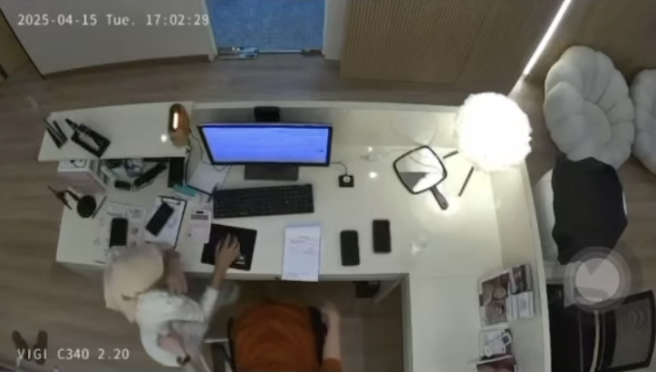 Video kedua pula menunjukkan seorang staf wanita sedang membuat kerja manakala seorang individu lain, dipercayai doktor, duduk di sebelahnya