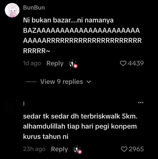 "Sedar tak sedar dah ter briskwalk 5km. Alhamdulillah tiap hari pergi confirm kurus tahun ni," tulis seorang pengguna.
